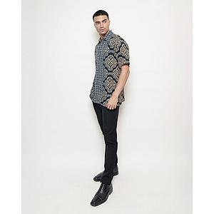 Hand-Drawn Batik Shirt With Bisma Latar Tambal Kartu Kawung Pattern