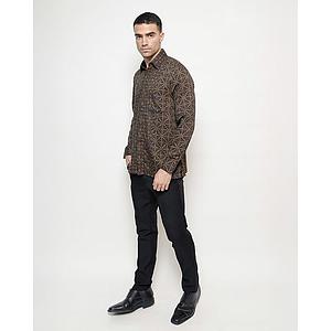Hand-Drawn Batik Shirt With Buket Lereng Seling Tambal Kawung Pattern